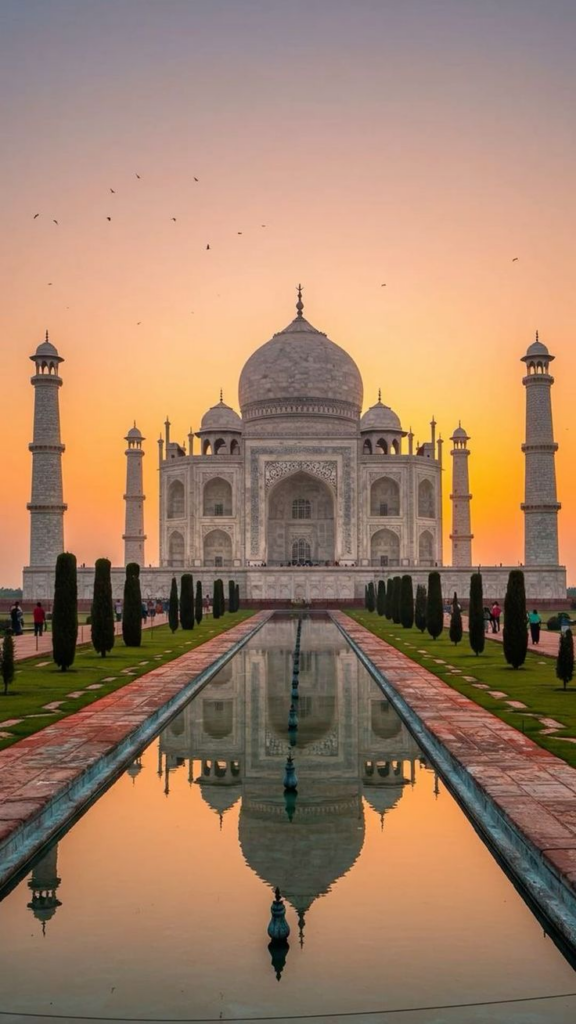 - Тадж-Махал (Індія): перлина мусульманського мистецтва, що стала вічним пам’ятником коханню. Білосніжний мармур змінює свій відтінок залежно від освітлення: від рожевого на світанку до сріблястого при місячному світлі.